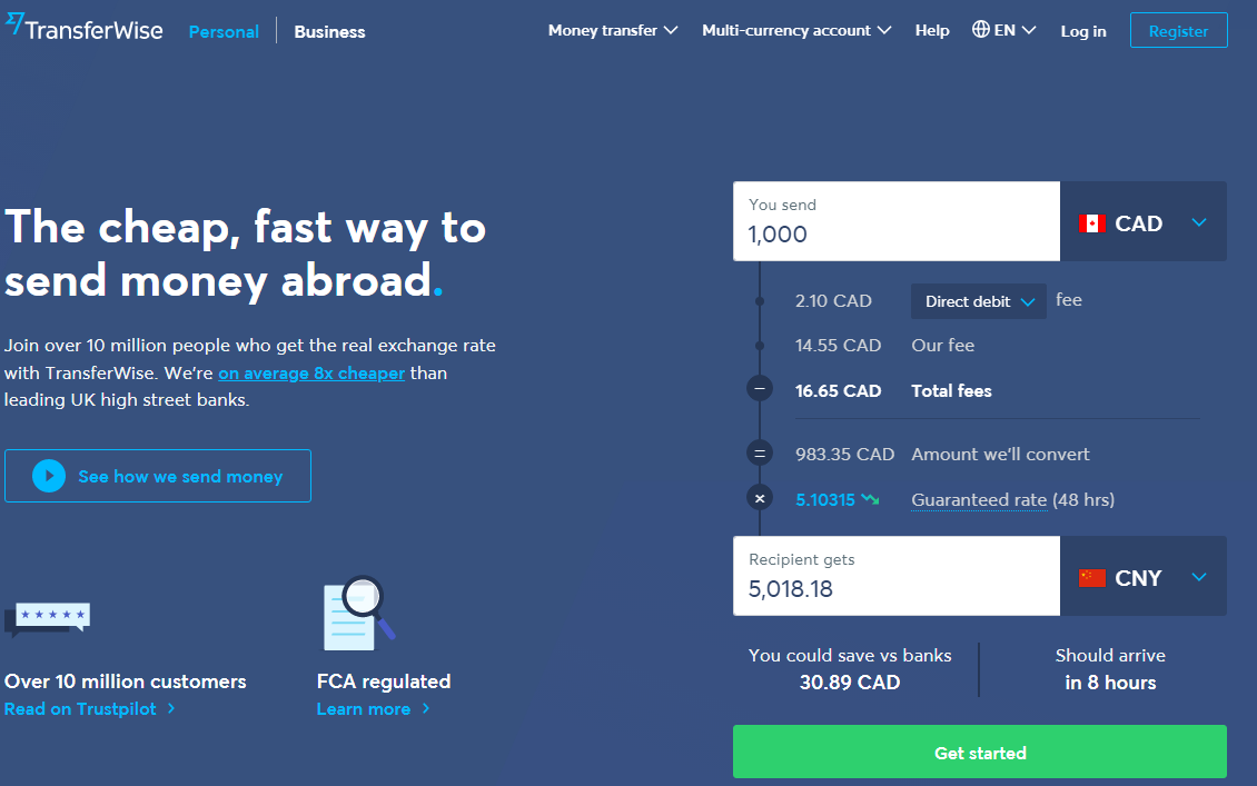成立于2011年的Remitly,是一家提供线上转账服务的公司,总部设于美国西雅图。 现在可以支持全球多达17个国家转账至包括中国在内的85个国家,基本可以满足绝大部分海外留学生与海外定居的小伙伴们的需求。其中汇出国家就有加拿大,汇入国家包含中国。网页支持中文操作,国内用户支付宝账户也可以收到来自Remitly的汇款。Remitly除了使用网页版,还可以下载APP,直接在移动设备上操作所有需要的功能,大大提高效率。